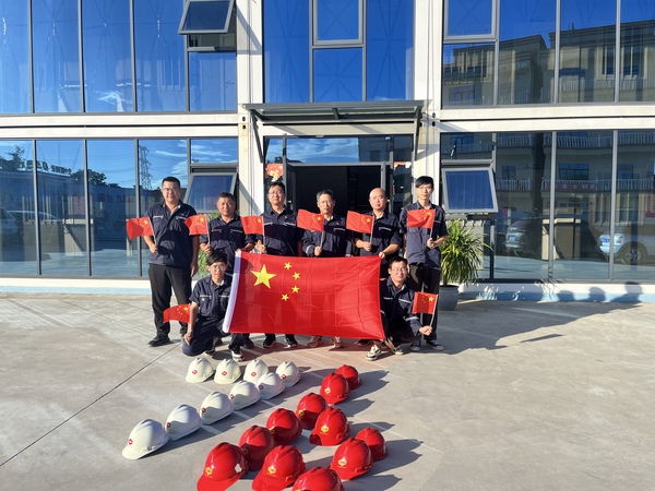双节将至,茂名项目现场红旗招展,节日氛围热烈。员工们手持鲜艳的小国旗,与高扬的五星红旗同框合影,挺拔的身影在阳光下熠熠生辉,以建设者的赤诚诠释对祖国的深情。随后,羽毛球赛的跃动、象棋对弈的凝思交织成欢腾的画卷——呐喊与掌声此起彼伏,既为紧绷的施工节奏注入活力,更在协作中淬炼团队的凝聚力。活动尾声,全员斗志昂扬,誓言以“假期不停工”的坚守抢抓进度,用精益求精的实干为祖国献礼,全力护航项目高质量推进!
