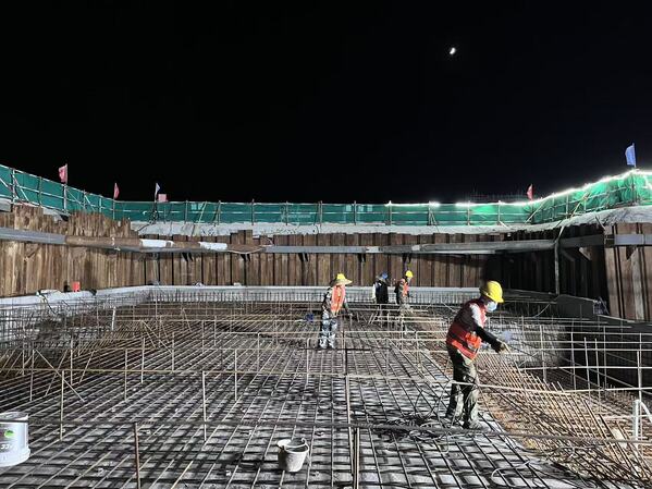 夜幕垂落,茂名项目现场的灯火与中秋的皓月交相辉映。钢筋绑扎工人弓身于工作面间,手中的铁丝如银线穿梭,将工程的骨骼一寸寸紧固。月光洒在他们黝黑的肩头,仿佛为这份坚守镀上柔和的勋章——他们以汗水为墨,以钢筋为笔,在节日的喧嚣外无声书写建设的诗行。每一处绑扎的接头,都是对团圆的另类注解;每一根梁柱的挺立,皆为献给祖国的坚实礼赞。愿这月光照亮归途,更愿这片土地因他们的双手而愈发强盛。(王玉龙)
