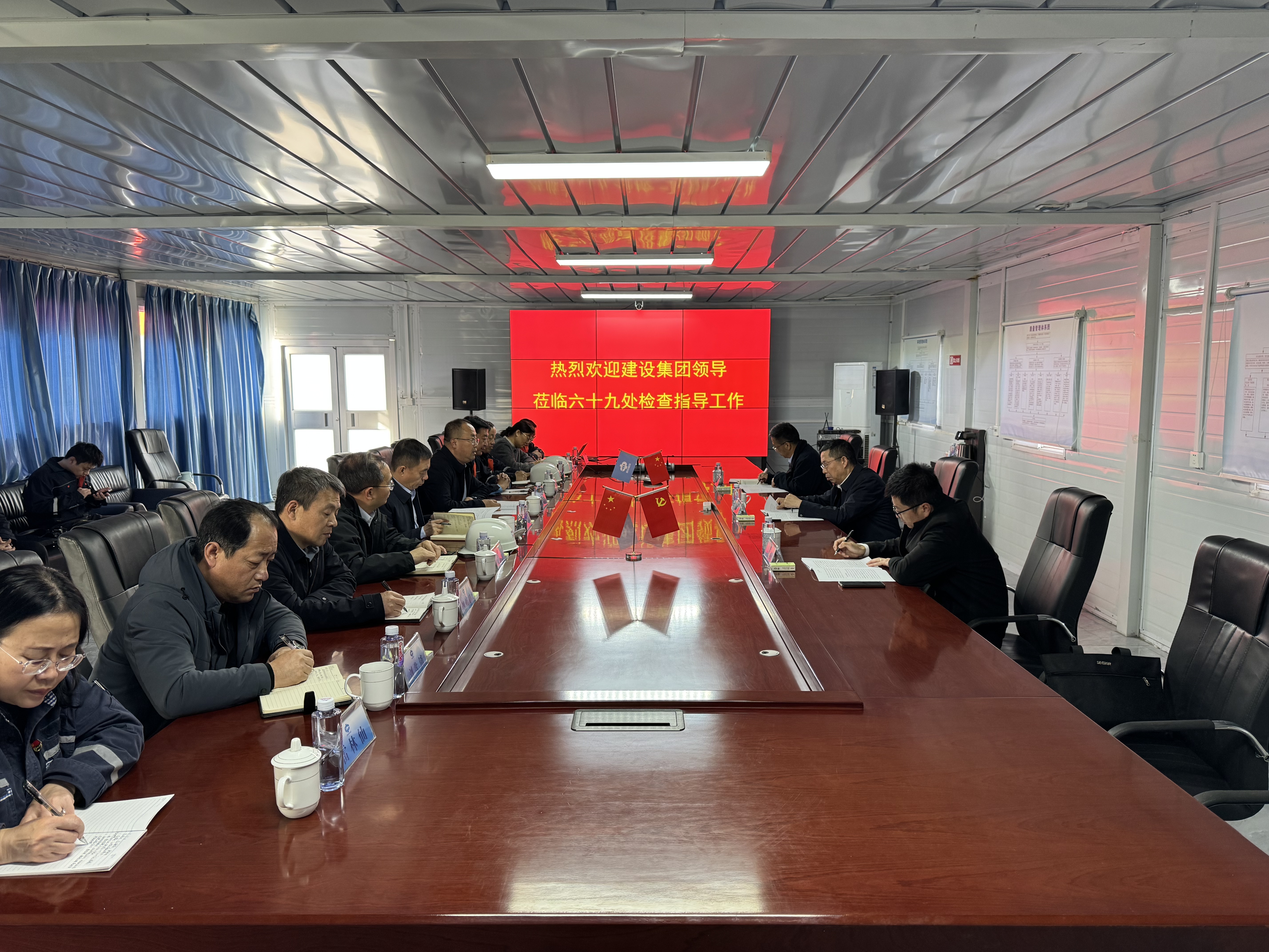 11月27日下午,建设集团党委书记、董事长王国元一行到六十九处春和景明项目部检查指导安全环保工作,实地察看项目现场,分别听取六十九处、春和景明项目部工作汇报,就下一步工作提出要求。