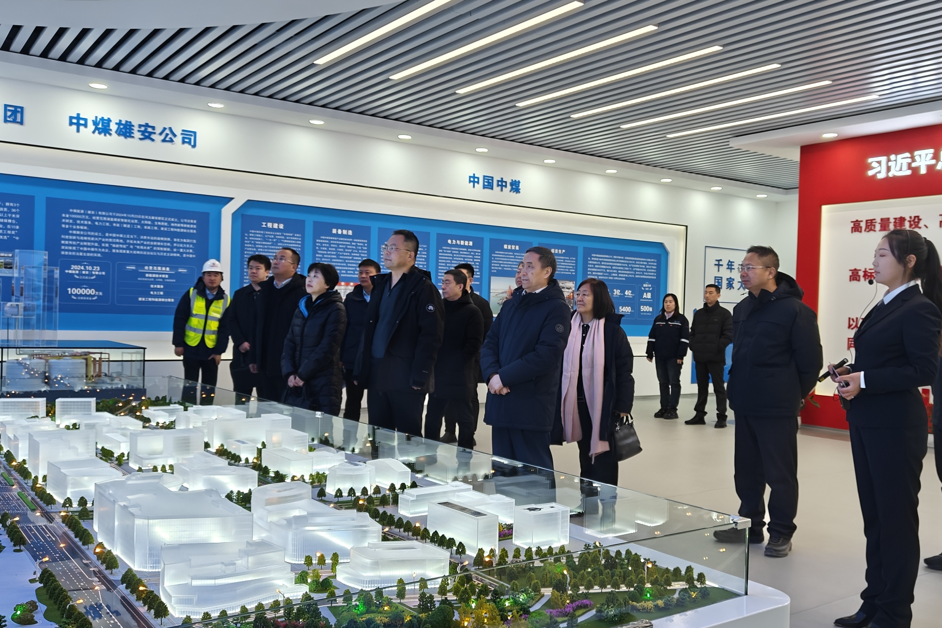 调研组要求,一要坚持整体把控,明晰功能定位,立足雄安新区发展全局,进一步明确和优化自身核心功能与战略角色,确保建设方向与国家战略、集团规划高度统一。二要充分把握雄安新区建设的重大机遇,以更高标准提升项目整体品质,锻造核心优势,增强市场竞争力,力争将项目打造为行业标杆。三要强化市场与安全质量管控,切实做好市场分析与风险控制,同时必须将安全与质量置于首位,建立健全长效管理机制,确保项目稳健运营。四要加强对雄安新区各项规划、政策的研究与理解,积极争取政策支持,确保项目发展与新区要求同频共振。五要加大在技术工艺方面的研发与创新力度,并注重项目全生命周期的系统谋划,实现从建设到运营的持续领先。
